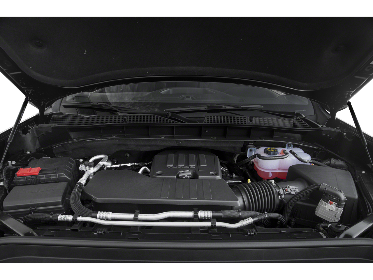 SEATS, FRONT BUCKET with center console (Includes (D07) center console.), AUDIO SYSTEM, GMC INFOTAINMENT SYSTEM WITH 8" DIAGONAL COLOR TOUCH-SCREEN, AM/FM STEREO with seek-and-scan and digital clock, includes Bluetooth® streaming audio for music and select phones; featuring wired Android Auto® and Apple CarPlay® capability for compatible phones (STD), ENGINE, 2.7L TURBO (310 hp [231 kW] @ 5600 rpm, 348 lb-ft of torque [471 Nm] @ 1500 rpm) (Includes (KW5) 220-amp alternator and (MQE) 8-speed automatic transmission. (STD), TRANSMISSION, 8-SPEED AUTOMATIC, ELECTRONICALLY CONTROLLED with overdrive and tow/haul mode. Includes Cruise Grade Braking and Powertrain Grade Braking (STD). Maintenance Up To Date, 109 Point Inspection